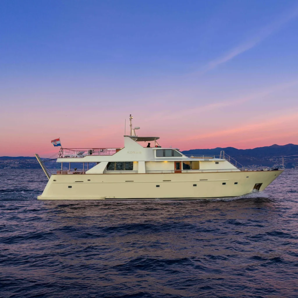 Korab is a 25-meter classic motor yacht that offers the kind of warmth and quiet comfort that instantly feels like home. Shaped by the Vidas family, who possess more than a century of experience at sea, the vessel provides a genuine and unhurried way to enjoy the Croatian coastline.